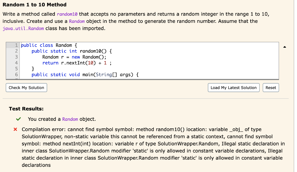 Solved Random 1 To 10 Method Write A Method Called Random10 Chegg Com